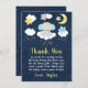 Este cartões de agradecimentos giro e caprichoso apresenta um adorável elefante bebê numa coroa dourada sentada numa nuvem com estrelas em queda. Ao fundo está um céu noturno estrelado e lua crescente. O texto combina o script manuscrito e as fontes sans serif para uma aparência na moda e moderna. Isto é perfeito para uma festa de aniversário.