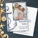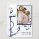 Obrigado seus convidados para fazer seu grande dia especial com este cartão com fotos inspirado náutico. Este cartão apresenta uma âncora na frente, juntamente com espaço para você preencher uma foto do dia do seu casamento.