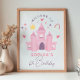 Este cartão de agradecimento de aniversário de menina apresenta um palácio rosa com estrelas e corações, e uma coroa de princesa, e um padrão rosa correspondente no verso. O cartão fornece áreas para você adicionar um nome e idade em uma fonte elegante. Perfeito para o aniversário de qualquer fã de princesa caprichosa, ótimo para um aniversário de 6 anos, mas totalmente personalizável para atender a fãs de fantasia mais velhos ou mais jovens. Uma ótima maneira de dizer um grande obrigado aos convidados.