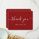 Cartões de agradecimentos vermelho russo com um fundo vermelho hessiano e uma fonte moderna de escrita. Personalize facilmente este cartões de agradecimentos para um casamento, chá de panela, aniversário ou outra ocasião.