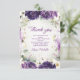 Cartão De Agradecimento Aniversário do Floral Branco Roxo Elegante Obrigad