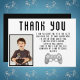 Cartões de agradecimentos de Aniversário de Foto para Jogos Controladores de Vídeo Controladora de jogos e texto preto em um fundo branco. Adicione seu texto, foto e nome.