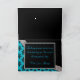 Lindo azul aqua com uma sobreposição de damasco preto em um fundo preto. Uma borda de gema curva em forma de diamante com um adorno preto de corte floral e diamante.