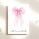 Cartões de agradecimentos elegante para o chá de sua menina apresentando uma bela ilustração aquática de um arco cor-de-rosa e "com amor e obrigados" em um roteiro chic. No verso, personalize o seu obrigado em uma simples carta moderna e adicione seus nomes em um script semelhante a assinatura, ou deixe o vazio para uma nota manuscrita.