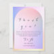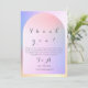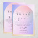 Este é um design de cartão de agradecimento de casamento simples, moderno e boêmio com arco ombre. Está em cores ombre/gradiente rosa, lilás e azul e tipografia/script azul/elegante cinza. O cartão é frente e verso, com o mesmo texto, arco boêmio e fundo ombre, tanto na frente quanto no verso. Diz "Obrigado", espaço para sua mensagem, iniciais do monograma, data e local do casamento. Este design minimalista e elegante é perfeito para agradecer à sua família e amigos por celebrarem seu casamento com você. Para personalizar, basta digitar suas iniciais, data e local do casamento. Você pode manter ou alterar a mensagem de agradecimento digitada ou deixar em branco se desejar escrevê-la à mão. Para alterar a cor ou a fonte, confira a ferramenta de edição de design. Para obter ajuda com personalização, produtos correspondentes ou para um design personalizado, entre em contato comigo pelo chat do Zazzle