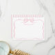 Este design de cartões de agradecimentos rosa bonito é elegante e tendencioso, apresentando um quadro de arco de fita popular. Isto foi pintado manualmente em aquarelas antes de ser digitalizado e editado digitalmente. O inverso do convite é um simples cinzeiro estriado, rosa e branco.