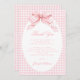 Adote a elegância do eterno com o nosso lindo boho Coquette, com o cartões de agradecimentos de chá de menina pré-desidratada, mostrando um charmoso arco rosa no padrão ginhham e um roteiro clássico de caligrafia na moda. Este cartão sofisticado é a forma perfeita de expressar sua gratidão com um toque de estilo encantador, fazer-o um acréscimo ideal para a sua doce e refinada celebração do chá da menina.