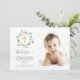 Estes cartões de agradecimentos da foto do baptismo na moda e à moda ou do batismo caracterizam uma grinalda do verde, folhas do eucalipto da aguarela em um fundo branco com uma cruz do ouro do falso. É ponto morto do género tão perfeito para uma menina ou um menino.