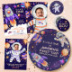 Esta design apresenta um astronauta flutuando no espaço cercado por planetas, o sol, um OVNI, galáxias e muitas estrelas num fundo roxo escuro. No capacete dos astronautas está um lugar para você adicionar sua própria foto. é ideal para um aniversário de tema espacial. Você pode personalizar a mensagem e o nome. Na parte de trás da placa está um padrão de galáxia correspondente. Veja toda a coleção correspondente. Toda a trabalho de arte é ilustrada e protegida por direitos autorais por Kaitlyn Thomas.