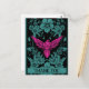 Ave rosa exótica, flores azul escuro, cartão de agradecimento gótico. Editável.