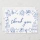 Cartão de Agradecimento de Casamento Azul e Branco Inspirado na Europa, Desenhado à Mão e Caprichoso.