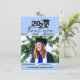 Graduação moderna agradece cartões com grandes números ousados por ano e boné de formatura. Adicione a sua fotografia / imagem do formando na horizontal com linhas de quadro. Nome do formando. Cor: azul claro. De trás tem espaço para escrever texto e citação ou nomes de pais. Perfeito para jardim de infância, segundo grau, faculdade, universidade ou exército/marinho ou medicina, enfermeira....