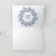 Linda, papoila azul, floral, aquarela com uma borda retangular de ouro sobre fundo branco. Dentro superior: coroa floral de papoila azul com modelos.