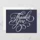 Cartões-postais 'Obrigado' escritos à mão com letra cursiva elegante em azul marinho escuro clássico. Perfeito para casamentos, aniversários, Natal, chá de bebê ou qualquer outra ocasião. Cartões-postais 'Obrigado' em azul marinho escuro clássico, se necessário, escolha qualquer outra cor ou adicione seu próprio texto impresso, endereço ou nome da empresa a partir da guia "Personalizar".