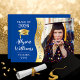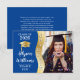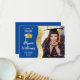 Formandos, digam "Obrigado" em estilo clássico com este obrigado de fotos "Formando" de tom azul e dourado que você design. O modelo apresenta uma visão ondulada do lado esquerdo com a palavra "Formando" no fundo ondulado dourado acompanhada por um boné de formatura dourado no ano de classe esquerda e formando, nome e a palavra "obrigado você" em branco. A parte traseira apresenta a sua mensagem exclusiva, juntamente com a sua assinatura de fechamento e digitada. Ou, se preferir vazio, certifique-se de que esses campos sejam apagados/excluídos. Ilustração original e design por Designs Holiday Hearts (direitos reservados) com o crédito de foto marcador para Logan Isbell via Unsplash.