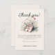 Uma ilustração encantadora de aquarela apresentando um par de calçados de bailarina de bebês descansando contra um buquê selvagem de flores silvestres cor-de-rosa, enfeita este elegante e adorável cartões de agradecimentos de chá de menina. Perfeito para um balé de chá de menina, para uma mãe que ama a pequena ideia de bailarina ou ama o balé.