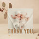 Baby Gift Modern Obrigado Chá de fraldas recém-nascido Obrigado Cartões apresenta sua foto favorita com o texto "Obrigado" em elegante escrito marrom na frente e uma foto adicional e sua mensagem personalizada no verso. Personalize editando o texto nas caixas de texto fornecidas. DICA FOTO: centralize sua foto antes de carregá-la no Zazzle para obter melhores resultados. Elaborado por ©Evco Studio https://www.zazzle.com/store/evcostudio