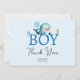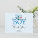 Um cartões de agradecimentos bonito, doce e na moda para uma festa de chá de fraldas de menino com um tema submarino. Apresenta uma cena submarina, pintada em aquarela, de peixes gelificados, peixes, algas marinhas e água. Parte do conjunto de convites para chás de fraldas do "Cute Whale Boy Invitation Suite".