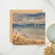 Cena do oceano com veleiros à distância e sandpipers na praia. A pintura impressionista produz uma sensação de calafrios, calmo e em terra. Decoração de praia, memórias de férias de verão.