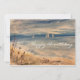 Cena do oceano com veleiros à distância e sandpipers na praia. A pintura impressionista produz uma sensação de calafrios, calmo e em terra. Decoração de praia, memórias de férias de verão.