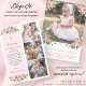 Esta tarjeta de agradecimento de batismo rosa, floral e multifoto para meninas apresenta lindos ramos de rosas de aquarela com vegetação botânica. A frente inclui 3 fotos, uma caligrafia elegante e uma simples cruz cristã e os detalhes do seu evento escritos numa tipografia serif de estilo vintage num tom super elegante de cinza carvão. No verso há espaço para outra foto, que está emoldurada por mais flores de aquarela, vegetação botânica e uma cruz, assim como um versículo da bíblia, que pode ser alterado para o que preferir. O verso da tarjeta pode ser emoldurado após o seu evento e guardado como uma lembrança especial da ocasião. Concebido como parte da minha elegante coleção Rosy Pink para bebés e crianças, certifique-se de explorar os outros itens da suite para criar um estilo elegante e coordenado para o seu batizado. Se precisar de ajuda para personalizar este convite ou desejar que eu crie elementos adicionais que combinem, entre em contato comigo (Dawn) em admin@albamarie.com. Estarei feliz em ajudar! Tarjeta de agradecimento de batismo espanhol rosa para meninas.