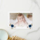 Cartão De Agradecimento Batismo de Foto Dourado Floral Azul de Aquarela