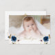 Design de cartão único e elegante, com flores azuis lindas, flores azuis esboçadas, flores esboçadas em ouro falso, obrigado moderno que você caligrafia, fotografia do bebê (fácil de ser adicionada) em fundo branco. Use a ferramenta Personalizar para adicionar suas informações, alterar fontes, cor do plano de fundo. Para encontrar itens, por favor, visite minha Coleção Elegante de Christening Baptism.