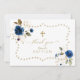 Delicar Flores Azuis design de Cartão Cruzado Dourado de Batismo. Apresenta delicadas flores azuis de aquarela, flores esboçadas douradas esboçadas, falso quadro brilhante dourado, cruz dourada, sobre fundo branco. Use a ferramenta Personalizar para adicionar suas informações. Para obter itens correspondentes, visite minha nova coleção de celebrações Baptism/Christening.