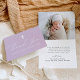 Cartões de agradecimentos batismo simples e elegante com cruz na frente, com "Obrigado" exibido em um roteiro casual de caligrafia branca com fundo roxo claro. Personalize a frente do cartões de agradecimentos de Batismo roxo leve com o nome do seu filho. A dentro do cartões de agradecimentos dobrado exibe uma foto horizontal com a mensagem mostrada abaixo. Este design funciona como excelente para Batismos Meninos.