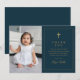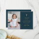 Um doce cartões de agradecimentos batismo com um belo quadro de brilho dourado e texto de batismo clássico editável com fotografia. Clique no botão editar para personalizar este design com seus detalhes e foto.