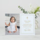 Um doce cartões de agradecimentos batismo com um belo quadro de brilho dourado e texto de batismo clássico editável com fotografia. Clique no botão editar para personalizar este design com seus detalhes e foto.
