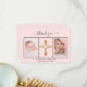 Adicione 2 ou 3 das suas próprias fotos e uma nota de agradecimento. Um fundo rosa dourado cinza, com texto e quadro pretos. O texto: Obrigado na frente e seus nomes no verso são escritos com um roteiro à mão com na moda com hastes.