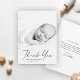 Cartões de agradecimentos de Bebê de Foto de Script Moderno. A parte traseira inclui um obrigado genérico que você pode personalizar ou remover se preferir escrever seu obrigado manualmente.