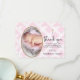 Batismos são eventos abençoados e agradecer aos seus convidados por estarem presentes é uma maneira maravilhosa de mantê-los conectados e continuar as orações para a sua menina. Personalize este cartão cor-de-rosa e branco com a foto do bebê, escolha um no dia do batismo ou uma foto tesourada, expresse sua gratidão, inclua o nome do cheio do bebê usando a ferramenta de personalização. Se quiser alterar a mensagem, você também poderá "Personalizar mais" quando clicar no botão Personalizar. Por favor, avise-me se precisar de ajuda. Parabéns!