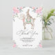 cartões de agradecimentos femininos e na moda com flores de verde macio, flores cor-de-rosa pastel e roxo e um belo coelho a andar de carneiro doce. Clique no botão "personalizar mais" se desejar reorganizar e formatar o estilo e o posicionamento do texto.