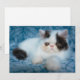 Esta fotografia Getty Images bonita apresenta um gatinho branco e preto esmaecido sentado em cobertor azul.