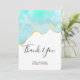 Cartões de agradecimentos com um design de verão vibrante. Turquesa / aqua imagem aqua verde aquosa com uma borda de ouro ondulada. Elegante e adorável.
