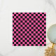 A vibrant checkerboard pattern of black and bright pink squares, creating a visually striking and bold contrast. The design is uniform and symmetrical.