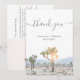 Elegante Boho Desert Greenery Joshua Tree Wedding Cartões de agradecimentos: um cartões de agradecimentos de casamento com uma paisagem desértica da árvore Joshua no fundo, e um upload de fotos personalizado e uma mensagem personalizada no verso. Isso faz o obrigado perfeito para os amantes do parque nacional.