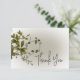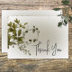 Este design de cartões de agradecimentos de casamento apresenta um simples e leve buquê de lado solto de verde botânico em um borrão verde macio em um fundo branco. É delicado e elegante. Criada pela "Simply Farmhouse Press", faz parte da suíte de cartas Boho Greenery Modern Floral Wedding.