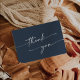 Este cartões de agradecimentos de casamento azul-escuro de marinho preto é perfeito para um casamento minimalista. A design boêmica moderna azul-escura, silenciosa e moderna, apresenta uma caligrafia rústica simples com um estilo único, mas clássico. A parte de trás do cartões de agradecimentos é vazio para que você possa escrever uma nota ponderada.