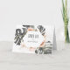 Com o estilo moderno do boho, este Cartões de agradecimentos tropical na moda tem folhagem de folha de Monstera fluindo com elementos florais brancos e cor de pêssego, incluindo orquídeas e rosas doces em pêssego branco e aterrorizado. Uma trendy geométrica tripla moldura em ouro cercado rodeia o texto na frente da placa. Personalize este cartão com os seus nomes. O dentro da placa tem um obrigado de exemplo que você envia e que pode ser personalizado com o seu próprio texto desejado. Você também pode excluir totalmente o texto do dentro de exemplo se quiser escrever manualmente seus cartões de agradecimento.