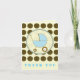 Um cartões de agradecimentos com fundo bolinhas castanho e bege. O texto frontal diz "Obrigado" e pode ser personalizado. Ilustração de uma dentro de bebê azul com carruagem de círculo correspondente. Adicione seu próprio dentro de mensagem. Procure convites correspondentes na categoria "Compro Bebê" da loja de Escolas Rosa.