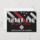 Este design apresenta uma bandeira de bombeiro com listras pretas e brancas e uma fina faixa vermelha também. Este cartões de agradecimentos é excelente por mostrar apreço e agradecimento a um bombeiro, tenente, capitão, ou chefe por seu serviço.