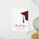 Um roteiro moderno de lente vermelha escura, burgundy e cartões de agradecimentos de graduação minimalista branca, apresentando um boné de formatura com bruxelas. ++++++++ Fácil de personalizar com seus detalhes e texto personalizado!