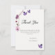 Uma ilustração encantadora de aquarela com um tema de borboleta, com borboletas roxas e flores silvestres roxas e rosadas em um estilo bonito e adorável. A elegante caligrafia divertida coloca um toque extra no título e enfeita esse cartões de agradecimentos chá de menina que é perfeito para uma celebração de primavera ou verão.