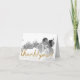 Personalize este cartão de agradecimento de casamento com foto dobrável e estilo, projetado com um texto moderno e elegante em letra manuscrita e brilho dourado falso "Obrigado!" sobre uma fotografia horizontal. Substitua a imagem do modelo pela sua, para obter os melhores resultados, use uma imagem de alta resolução. Observe que o dourado é uma impressão colorida (amarelo) e não é realmente uma cor metálica dourada ou folha de ouro ou brilho. Este design tem uma redação dentro: "Nosso casamento não teria sido completo sem o apoio de nossa família e amigos. Obrigado por compartilhar nosso dia!" Você pode alterar as palavras com as suas ou excluir o texto para mantê-lo em branco. *Créditos da foto do modelo © por Timothy Marsee
