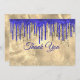 Cartão De Agradecimento Brilho real azul chic dourado escorre