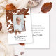 Mostre apreço aos seus convidados por lembrarem o seu amado após a sua morte na Celebração do Life Memorial com a Simpatia de Serviço Funeral Brown e Flat Obrigado Note Card. Este obrigado personalizado de homenagem à morte em madeira que você apresenta uma fotografia da natureza de fecho digitalmente melhorada das folhas marrom-coreanas na árvore com um fundo branco. Personalize-o com uma fotografia do falecido, das datas de nascimento e morte e da sua mensagem pessoal no verso. Perfeito para um evento de setembro, outubro ou outono de novembro.
