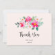 Cartões de agradecimentos com uma imagem de aquarela branca. Um belo arranjo floral com cor rosa brilhante e rosa pastel aninhado entre folhas verdes e galhos.